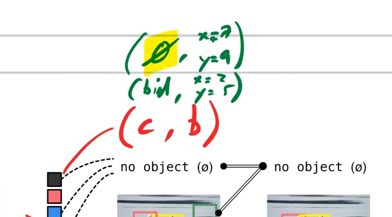 对象的结构如下草图所示:首先是存在概率c,即该识别框存在的概率;当概率为0时,这个输出被视为空,即无效识别框。其次则是包围框的位置和大小b。