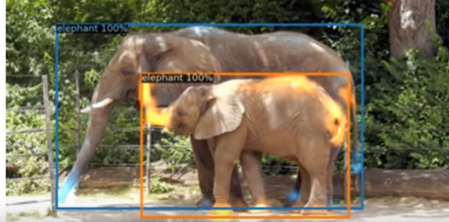 结果:可以看出自注意力机制在对象的分隔上起到了很好的作用。对于有遮挡关系的对象,自注意力机制也能理解到未被遮挡的关键的部位,并给出对应的包围盒(图2蓝色的部分)。在这种框架下,实际上也可以做到像素级别的分割。