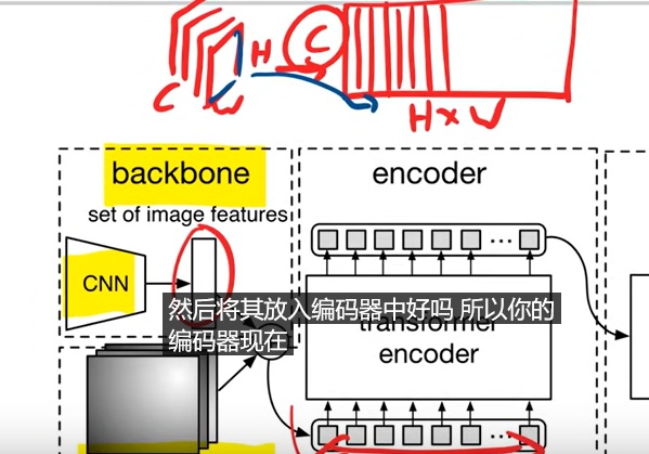 backbone部分将图像转化为多尺度的特征图,并在展平后结合位置信息放入Transformer的encoder中。