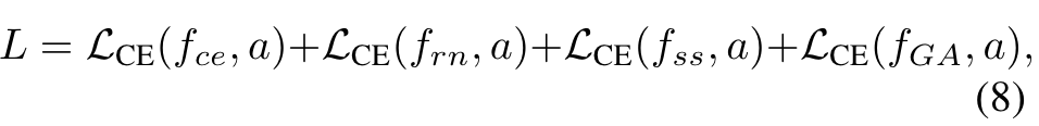 loss被称为三个层级的cross-entropy loss与融合后total cross-entropy loss,并均赋予相同权重