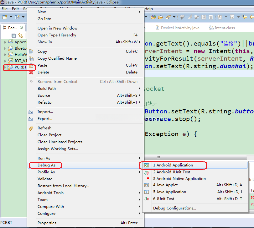 如果连接手机调试,进入调试模式需要一段时间,手机上会有等待提示窗口,耐心等待eclipse进入调试模式。开始调试后,与其它调试一样,运行到断点处,可以双击要查看的变量,右键选择watch,在观测区(Expressions)会显示变量当前值。