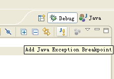 Breakpoints工具框顶右第四使用”增加Exception异常断点”