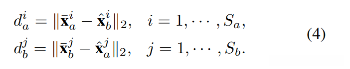 在 DuATM 中,双重注意力是双向的,即对 {xi a} 和 {xj b} 分别执行两次双重注意力过程。因此,我们使用两个比较方向上的序列对的距离来定义整体序列的距离。具体来说,我们使用欧几里得距离来计算特征对之间的距离,即