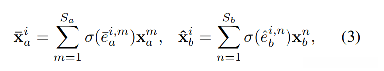 - 最后,通过归一化注意力权重分别线性组合相应序列中的元素,获得语义细化和对齐的特征向量对 (¯xi a, xi b)