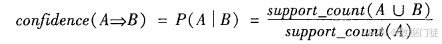 一旦由事务找出频繁项集,就可以直接由频繁项集产生强关联规则(强关联规则 满足最小支持度 和最小置信度),关联规则的公式如下: