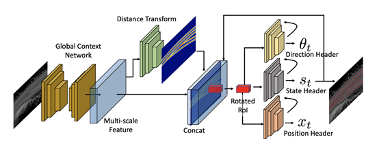 DAGMapper的主要功能也是一个循环卷积头。该系统通过不断关注以最后一个预测点为中心的裁剪特征图补丁来推断下一步的位置。该系统在原有基础上进行了改进,并引入了对节点状态的新分类机制。