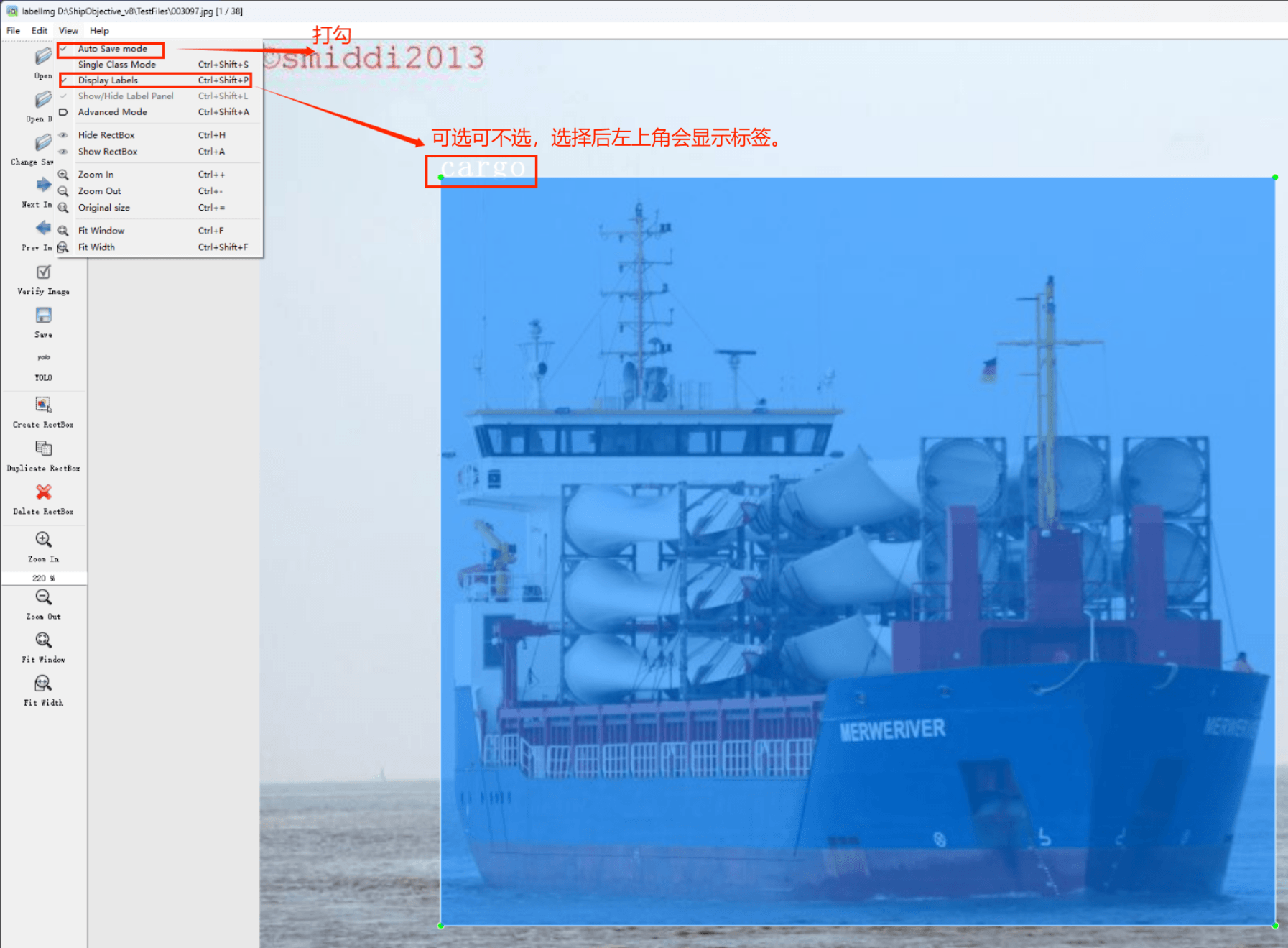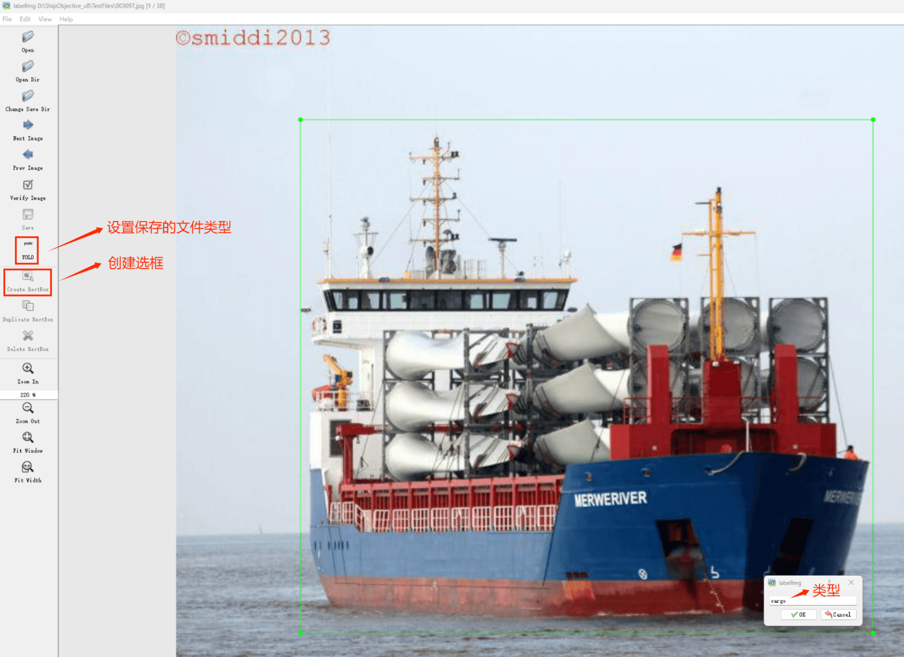 通过从数据集中收集各种舰船相关的图像,并利用Labelimg标注工具对每张图片进行精确标注,在13个具体的分类中分别识别出:货船、客船、游轮、散货船、油轮、帆船、拖船、渔船、钻井平台、消防船、集装箱船、军舰和潜艇。