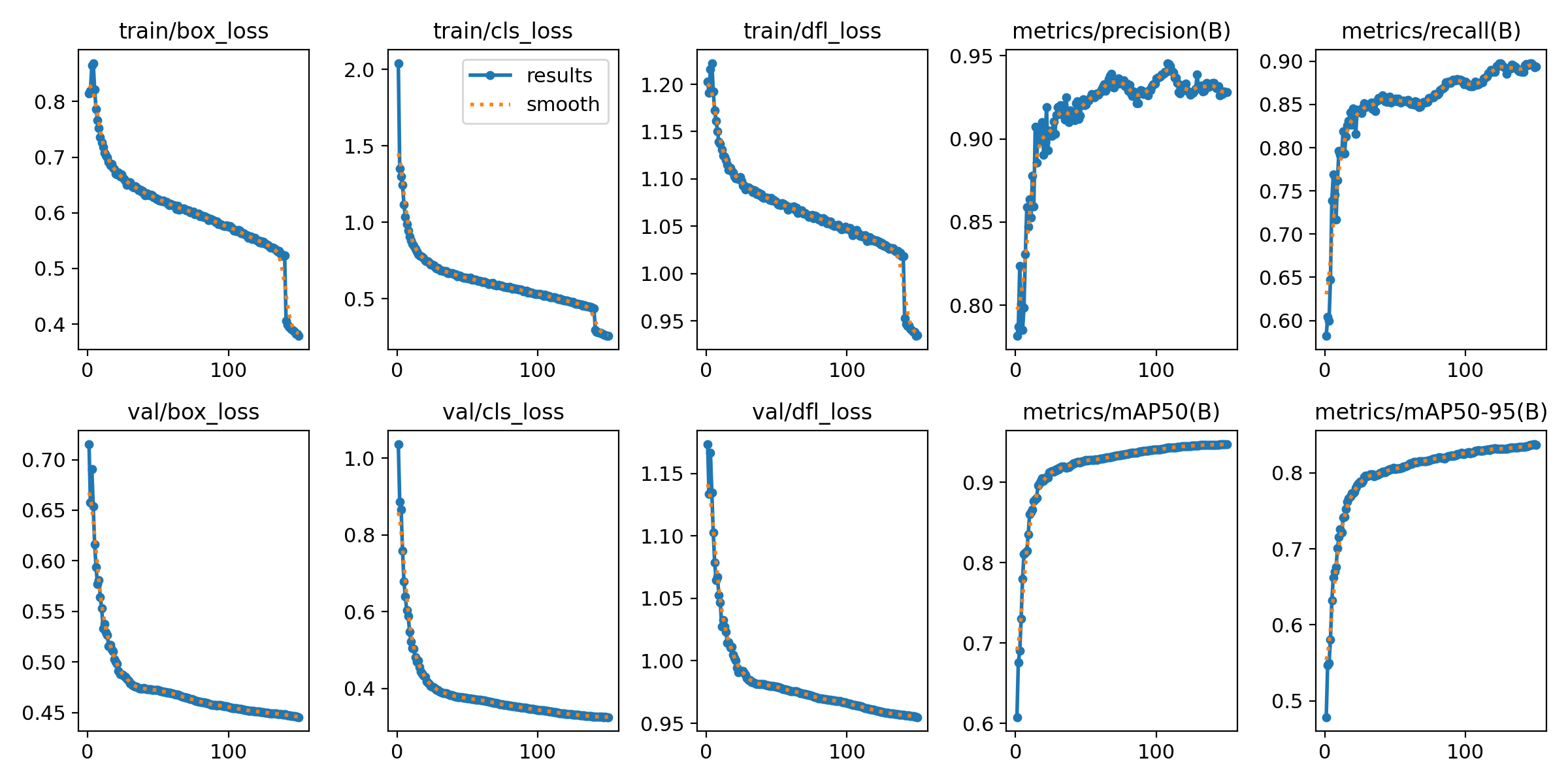 (1)定位损失 (box_loss):衡量预测框与标定框之间的差异程度(GIoU),值越小表明定位越精确。