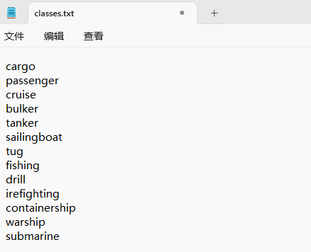 固定不变地存储标签类别的文件名定义为classes.txt, 用于存储创建的分类标记