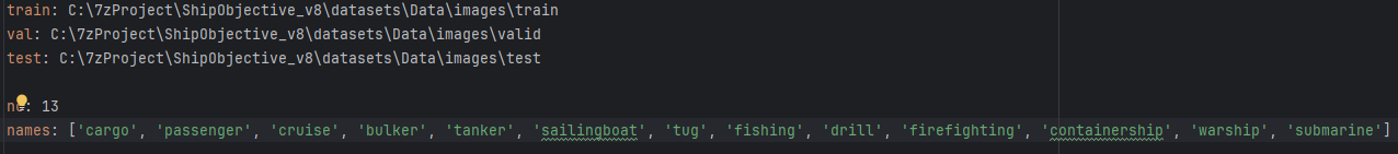 该文件确定了用于模型训练和验证的数据集路径,并指出了模型需要检测的目标类别