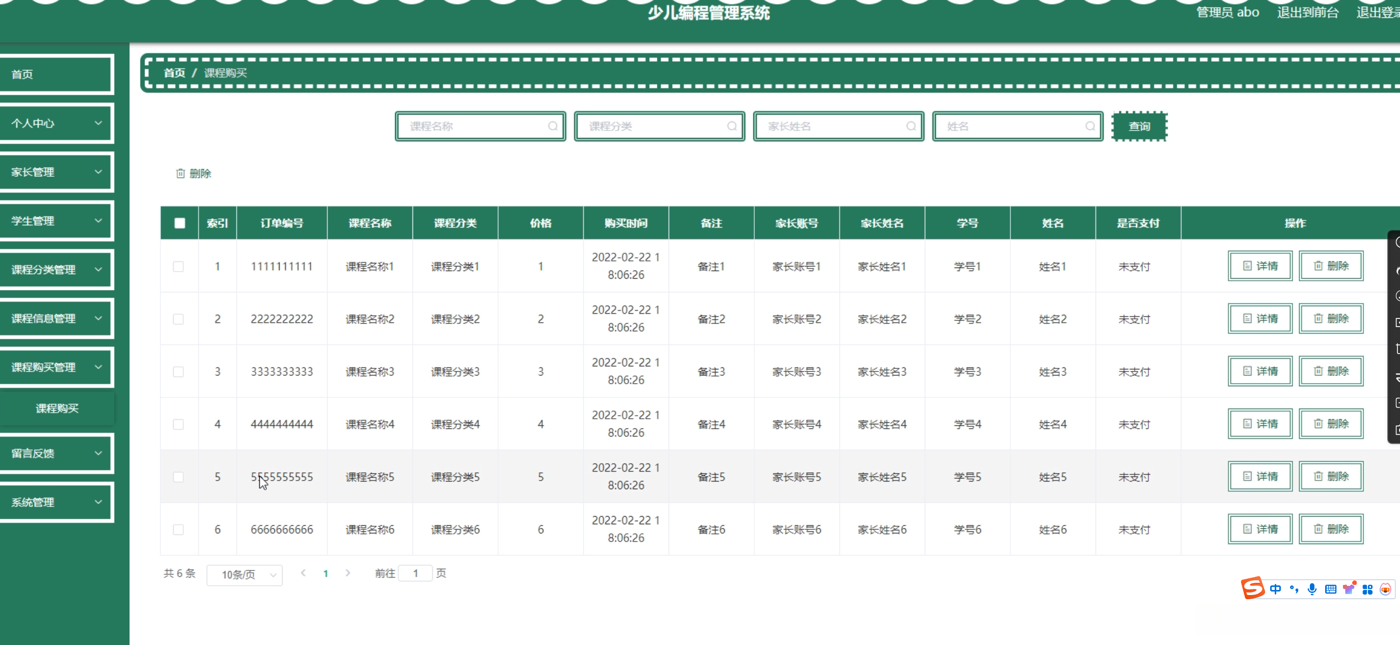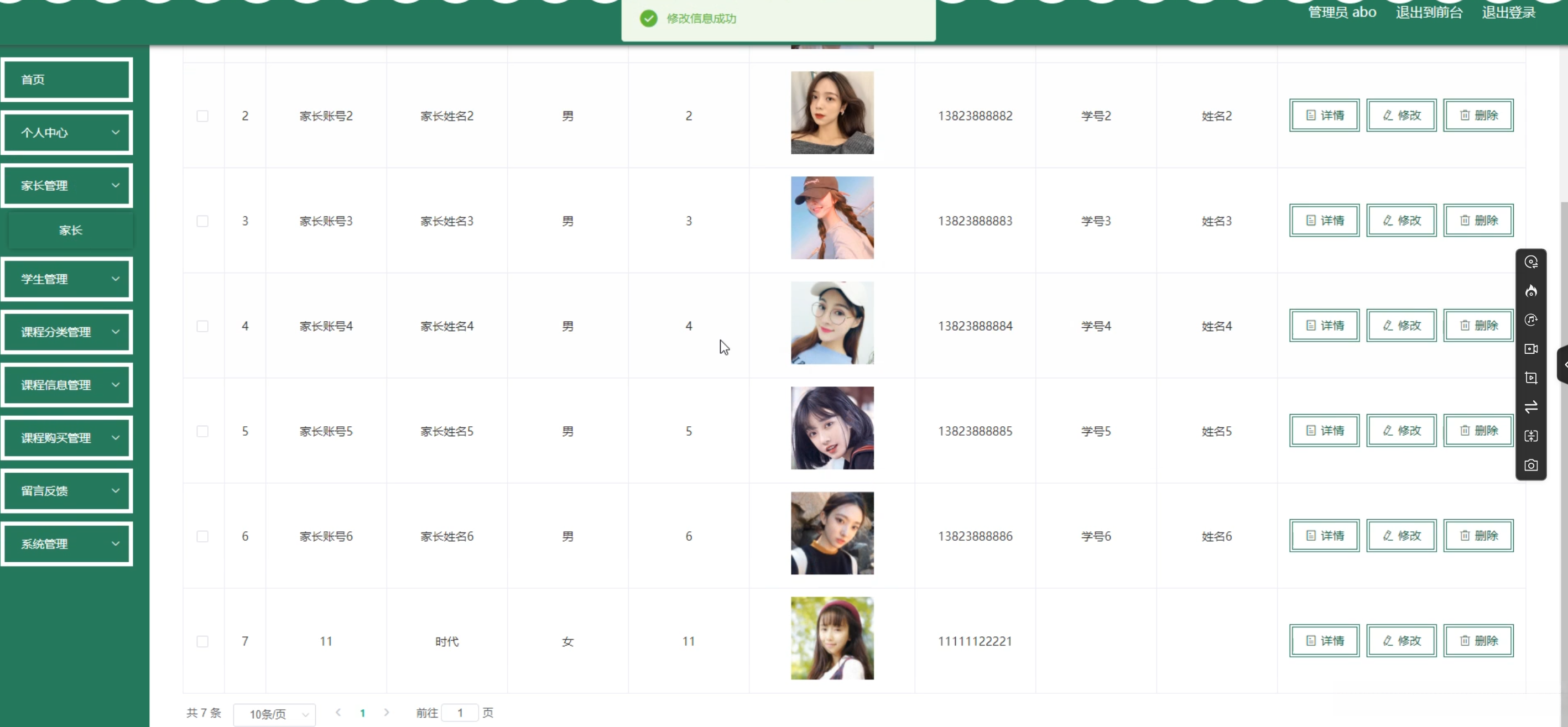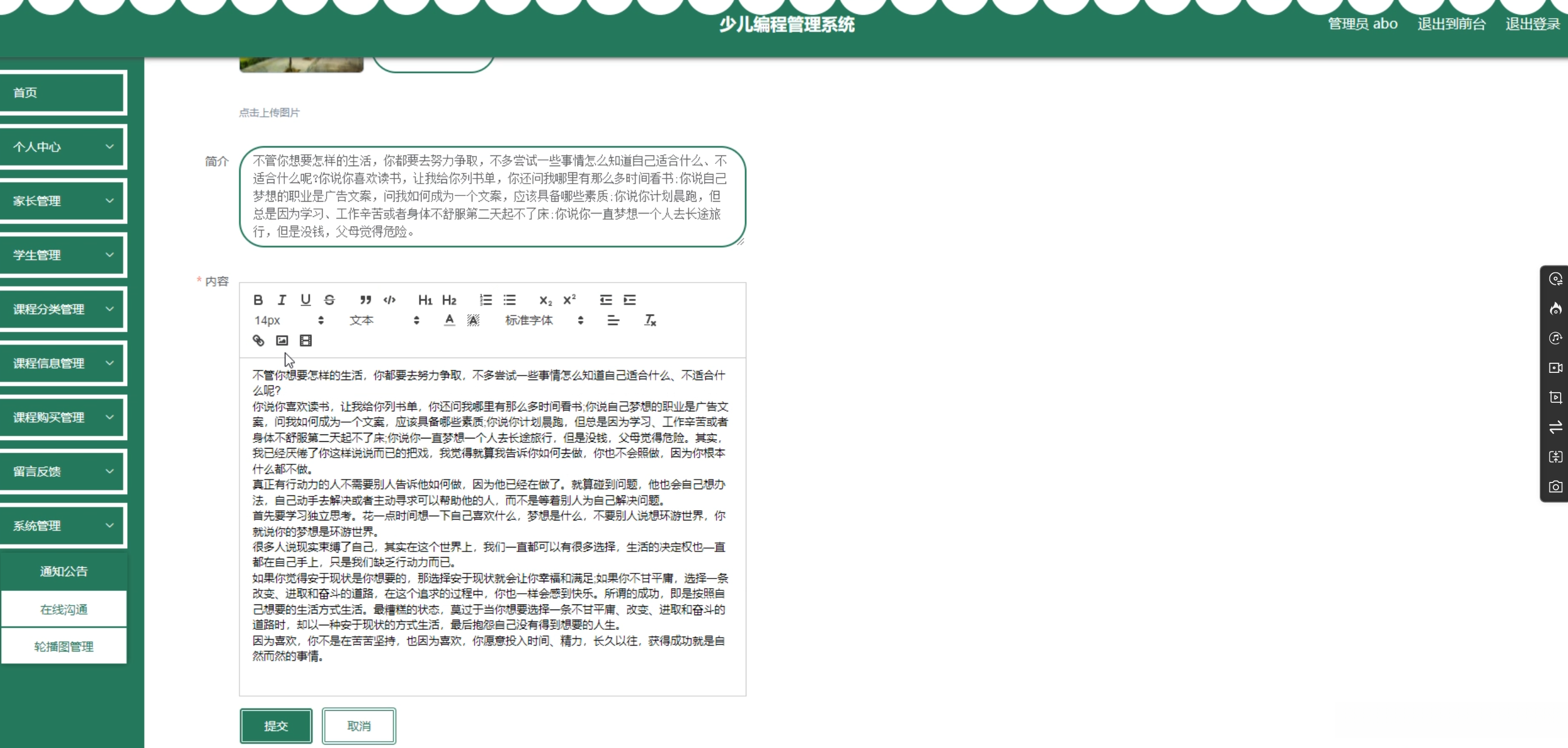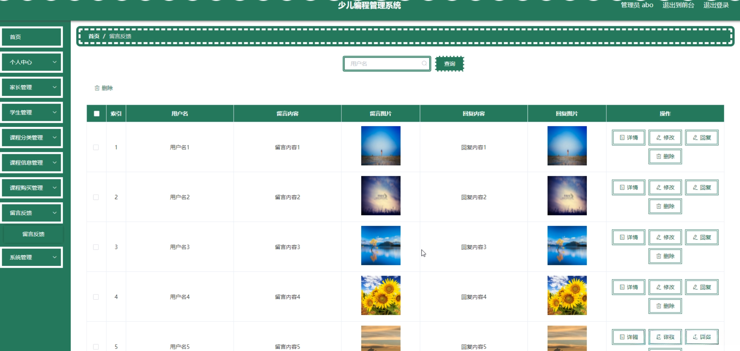 基于SpringBoot框架构建的一套功能完善、稳定且安全的少儿编程管理系统,在学生信息管理方面实现了学生成绩追踪与报告生成,在教师信息管理方面提供了课程大纲设计与批处理作业功能,在课程信息管理方面支持智能排课与进度监控,在选课信息管理方面具备智能推荐与错课登记提醒等功能部分。通过优化配置实现教学过程中的无缝衔接,在课程安排上采用灵活多样的时间段划分策略,在选课流程上设置了智能提示与错时排课机制;通过引入智能化评估指标体系实现对学生学习效果的有效追踪,在个性化学习指导方面提供动态化辅导方案;通过整合大数据分析技术实现精准的教学目标预测;通过引入智能化排课算法实现资源的最佳利用;通过建立多层次反馈机制收集学生的意见与建议;在服务质量方面注重用户体验的持续优化;在系统稳定性方面实现了高并发下的无故障运行能力;在数据安全性方面采用了先进的加密技术和访问控制措施;在易用性方面提供了友好的人机交互界面;在可扩展性方面支持多平台协同工作环境的构建