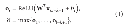 公式(1)中W为卷积核参数矩阵,oi为第i个输出特征图,o^为将所有特征图做最大池化拼接后的结果。