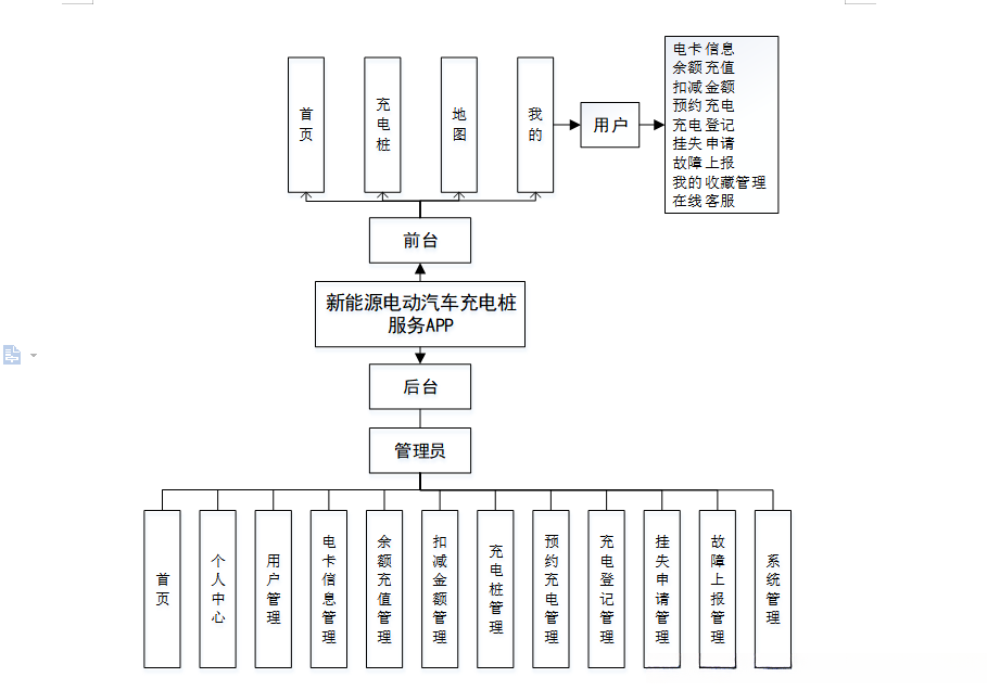 该款新能源电动汽车充电桩服务app;用户可以通过注册账号从而登入系统主界面来实现相对应的功能,分别是查看首页,充电桩,地图,我的等功能。
