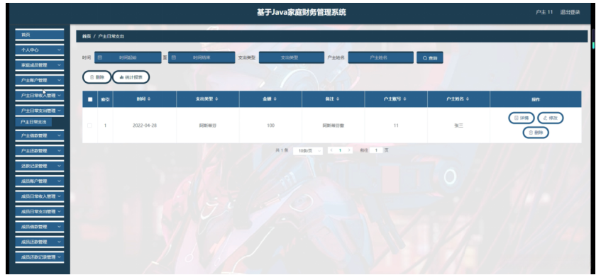 该平台提供日常费用管理功能,在该功能的用户界面中可对各项记录信息进行详细编辑操作。具体可编辑的内容包括索引字段、时间戳记录以及各类账单数据等信息项。如图5-11所示为操作界面示例图