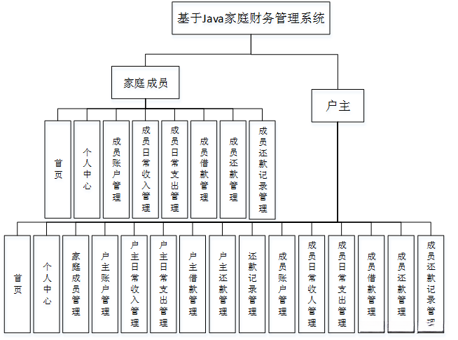 本课题的研究目标是设计并实现一套家庭财务管理系统方案。该方案主要包含管理角色模块、主人角色模块以及各类成员的角色模块和其他辅助功能。