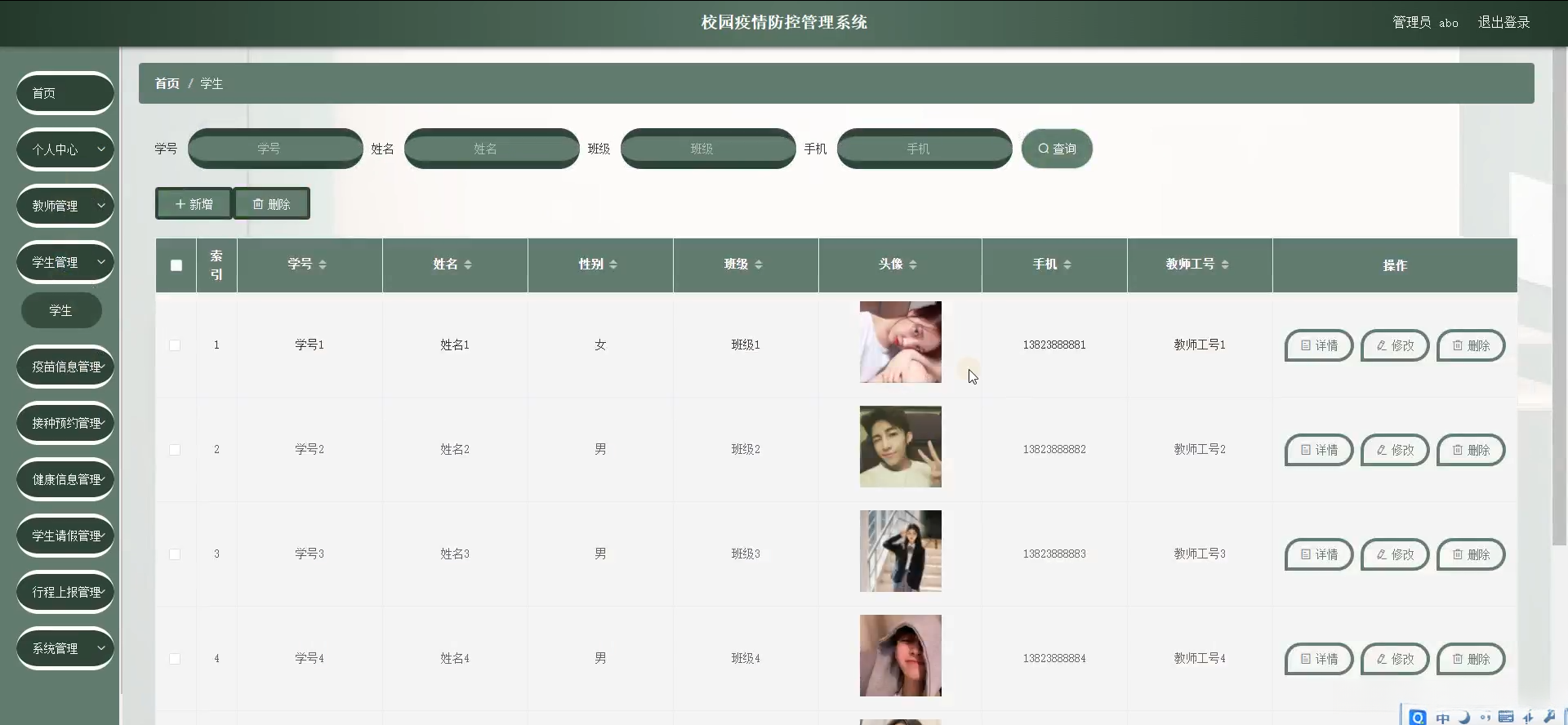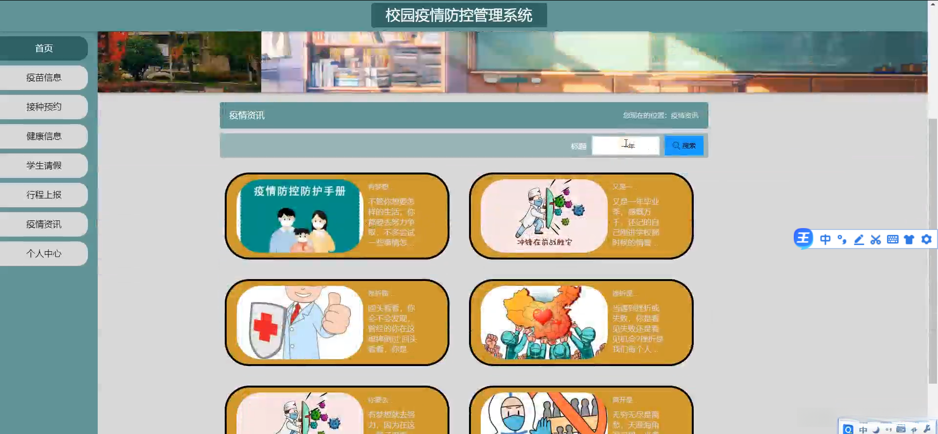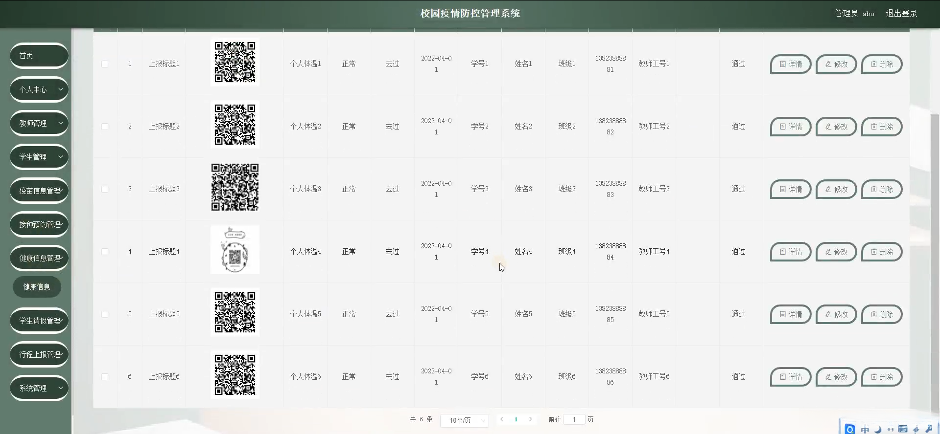 本研究致力于开发一个全面且高效的校园疫情防控管理系统。具体而言,则涵盖了师生健康记录输入、疫情数据分析统计以及异常行为警示等模块,并提供了相应的应急响应方案。借助这一系统建设后,在追踪学生日常健康状况方面更为便捷高效。有效识别和应对可能出现的疫情问题。从而建立了一套系统的防控机制。