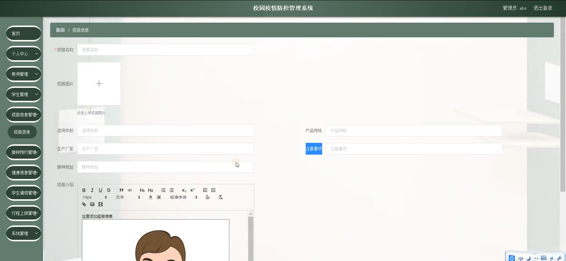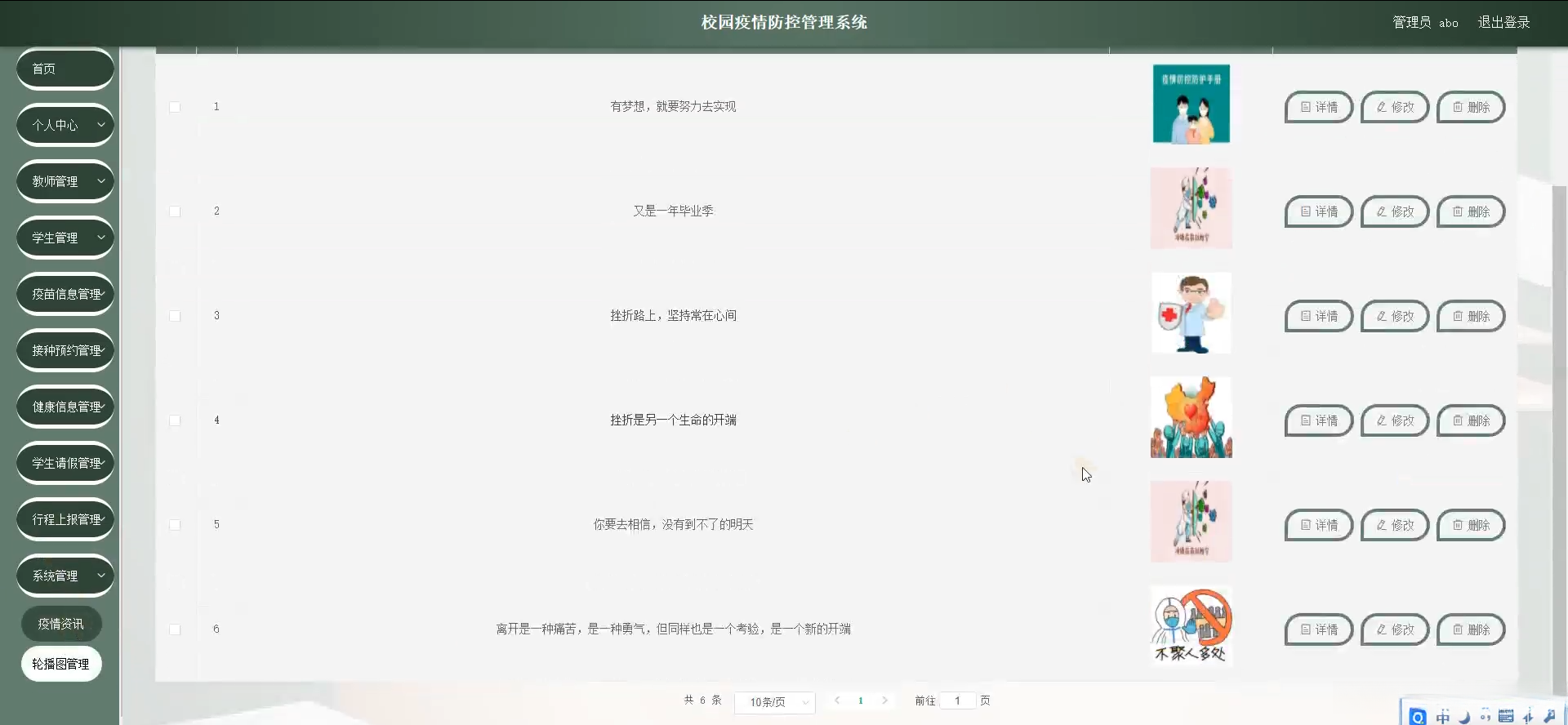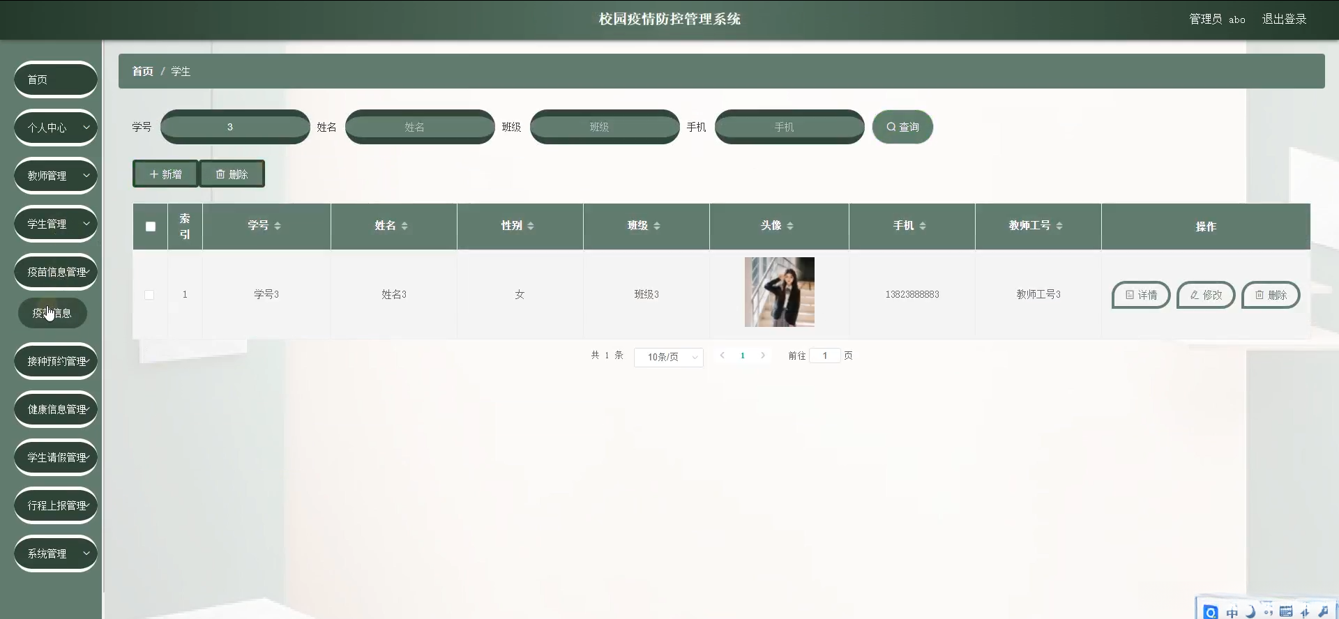 本研究致力于开发一个全面且高效的校园疫情防控管理系统。具体而言,则涵盖了师生健康记录输入、疫情数据分析统计以及异常行为警示等模块,并提供了相应的应急响应方案。借助这一系统建设后,在追踪学生日常健康状况方面更为便捷高效。有效识别和应对可能出现的疫情问题。从而建立了一套系统的防控机制。