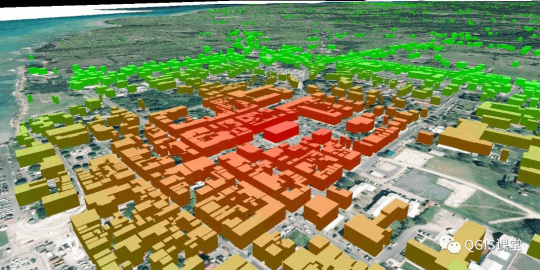 在三维场景中利用属性字段的取值或者使用表达式来设定多边形图层的颜色。材质的不同会直接影响颜色和外观的表现效果: