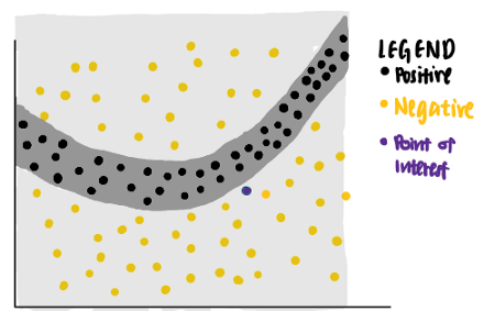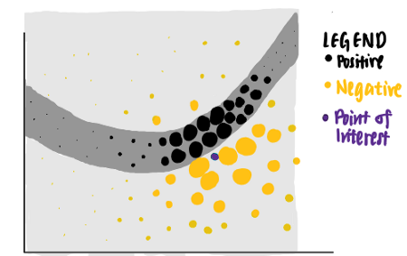 现在,我们很好奇模型对特定数据点(紫色)所做的决定。我们扪心自问,为什么这个特定的点被神经网络预测为负?
