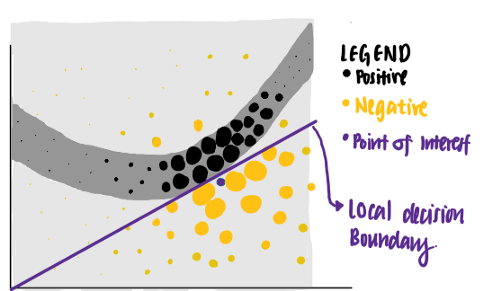 根据Ribeiro等人[2]的LIME论文,LIME的目标是“在可解释表示上识别一个局部忠实于分类器的可解释模型”。换句话说,LIME能够解释某一特定点的分类结果。LIME也适用于所有类型的模型,使其不受模型影响。