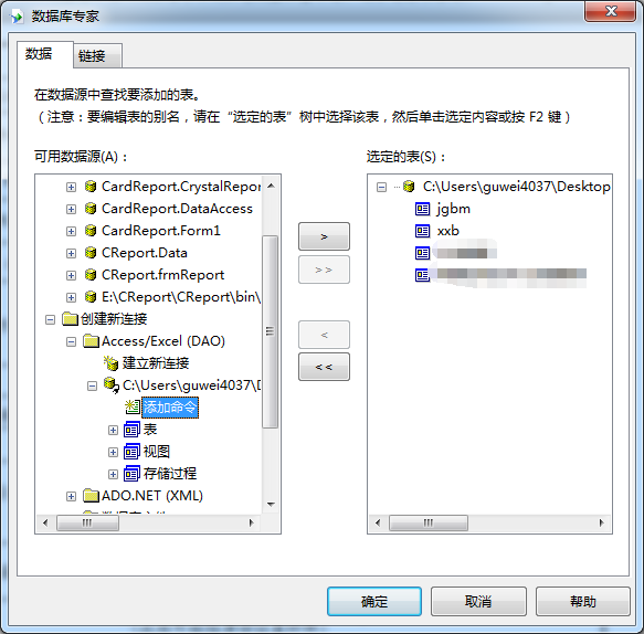 在弹出的对话框中,创建新连接,选择我们的access数据库。