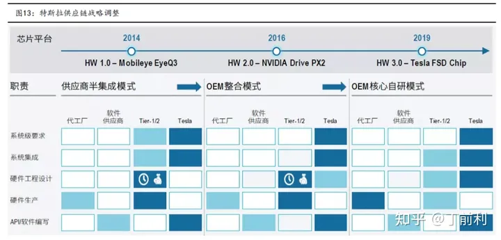 特斯拉展现出了非凡的勇气;具体来说,在于其采用了自主的研发模式;从芯片开始,并通过操作系统以及算法实现自主研发;整体性能能够充分发挥。