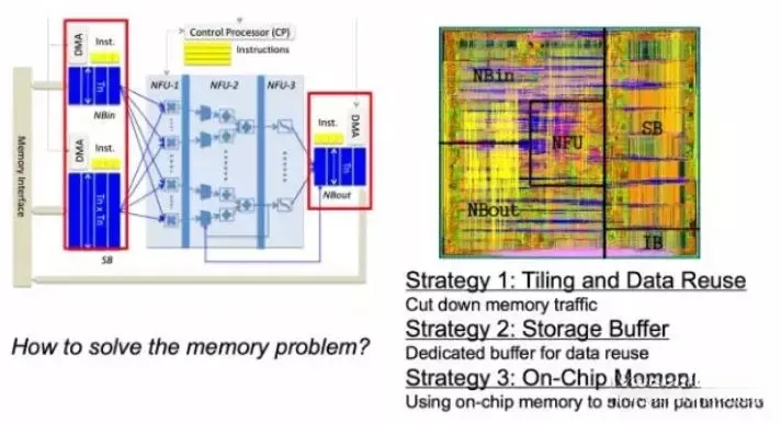 在体系架构层面进一步提升整体Memory系统的性能,在该研究团队展示了部分寒武纪相关的科研成果实例中可以看出这一技术的应用效果显著。其中一种较为常见的技术手段是通过最大化数据复用(Data Reuse)来提高效率,在芯片内部尽可能多地复用已获取的数据信息,在芯片内部存储空间有限的情况下优先采用内存缓存能够加快数据访问速度并减少内存访问频率可以显著提升运算效率这一技术手段不仅有助于减少内存访问时间还能最大限度地发挥内存带宽的作用从而实现系统性能的整体提升