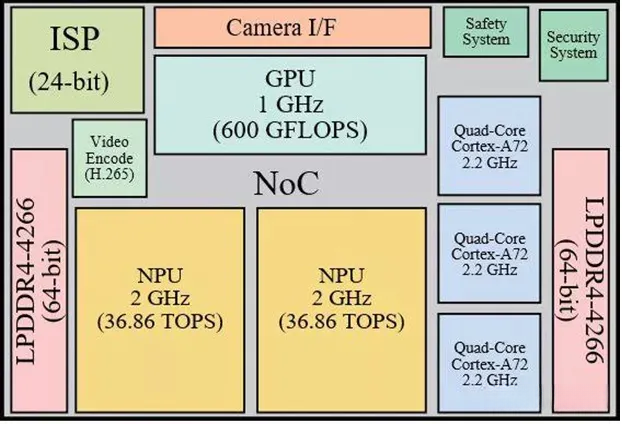 一些通用性较高的处理任务并不适合由神经网络处理器来执行、而是由中央处理器(CPU)来完成的。据称,在这一芯片中集成有12个高性能ARM Cortex-A72核心(64位),其运行速度达到了每秒两吉赫兹(GHz)。尽管如此——更为精确的说法是该芯片包含三个四核处理器——但为何特斯拉选择采用ARM基于Cortex-A72的技术仍让人感到困惑。该架构于2015年推出后不久便发布了Cortex-A73、Cortex-A75以及仅仅几天前推出的Cortex-A77系列型号。Alder和他的一组研究员表示,在设计这些先进架构之前已有相关想法已经形成并得以实施。