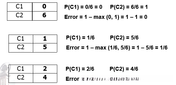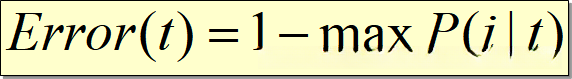 叶子节点的类标签由子树中的大多数类实例确定,剩下的就是所有分错的数据所占比率,举个例子: