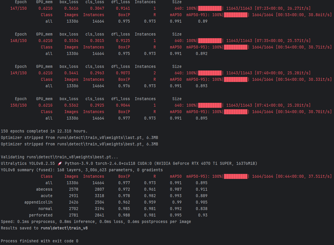 采用YOLOv8算法进行优化后,在腹部阑尾病变检测任务中的表现尤为出色。