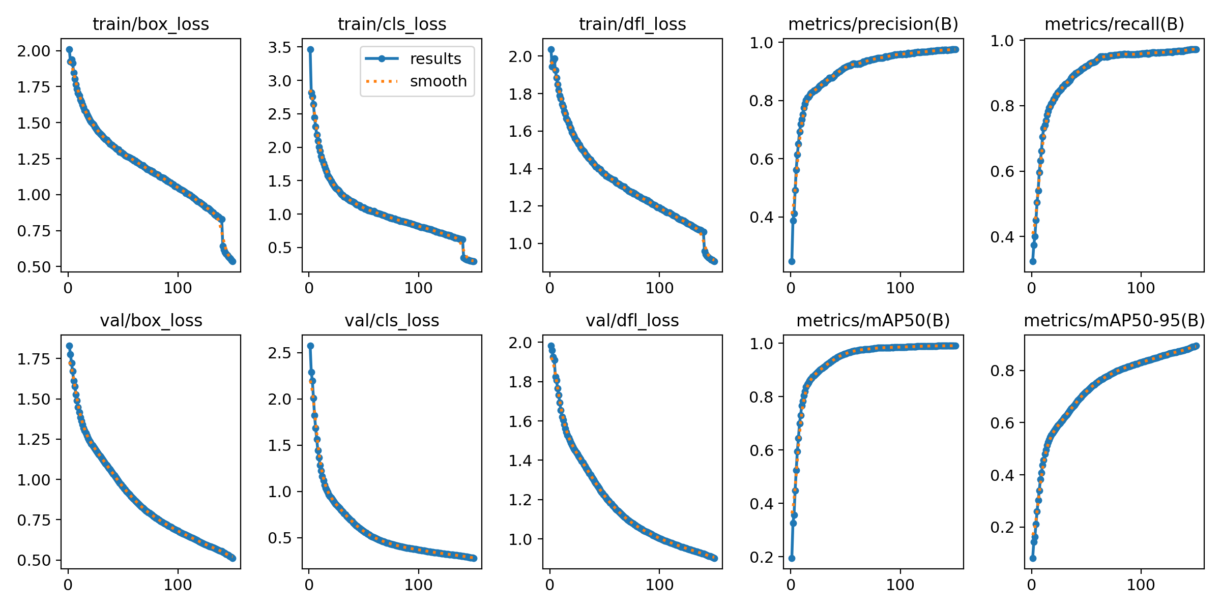 (1)通过查看这些图表可以看出,在训练过程中该模型显著提升了边框回归、分类以及召回率等多个指标的性能,并且在验证集上表现出良好的一致性与泛化能力。