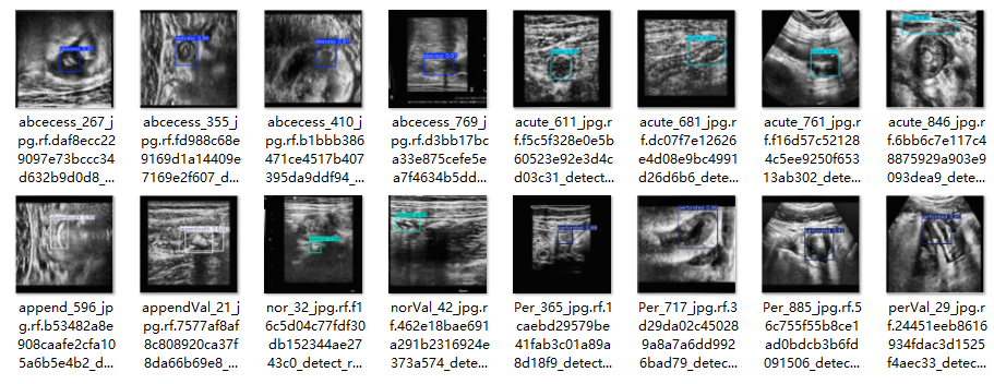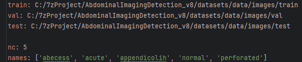 本研究采用了包含腹腔内阑尾病变病例的数据集作为基础,并借助Labelimg标注工具为每张图像中的目标边界框及其分类信息进行了精确标注。随后基于该数据集我们对YOLOv8n模型进行了系统性训练并对模型在验证集上的性能表现进行了全面评估与详细对比分析整个实验流程涵盖以下几个关键环节:首先经过充分的数据准备阶段随后进入模型训练阶段完成参数优化工作最终进入评估鉴定环节以全面检验模型性能各阶段指标均按照既定标准进行严格把控确保实验结果的有效性和可靠性