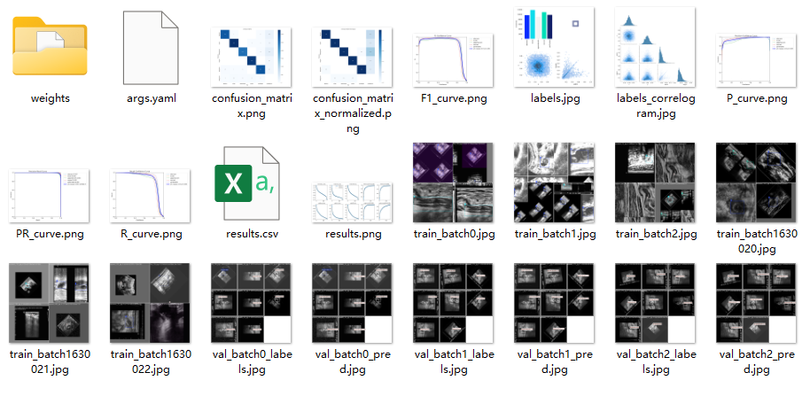 (4)模型训练完成后生成的结果文件将被存储在命名为train_v8的目标文件夹内:name=’train_v8′