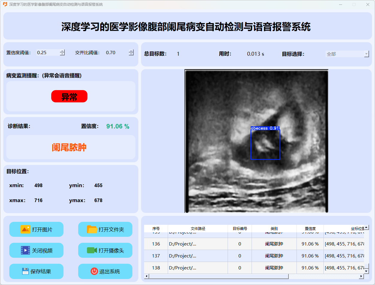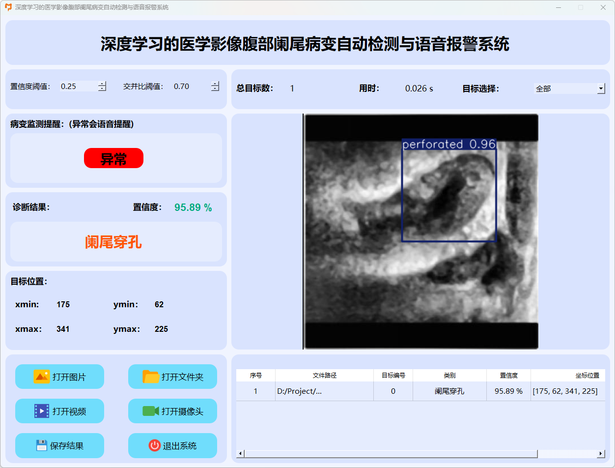 基于YOLOv8深度学习的医学影像腹部阑尾病变自动检测与语音报警系统