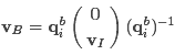 基于此定义,在旋转变换中能够求得一个相应的逆元素。用作旋转变换的四元数具有特殊的性质——它们具有单位向量属性。因此,在这种情况下我们可以说该元素不仅存在而且等于它的共轭元素。具体来说,在这种情况下如果我们将一个四元素表示为[a, b, c, d]的形式(其中满足条件a² + b² + c² + d² = 1),那么它的逆运算等同于取其共轭运算即得到的结果形式均为[a, -b, -c, -d]。值得注意的是该乘法运算不满足交换律即对于两个任意选取的不同位置上的元素相乘结果会因顺序不同而不同。通过该方法实现旋转变换的过程如下:将三维空间中的点v_I绕某个轴旋转至v_B的位置这一操作可借助相应的旋转矩阵或者更为简洁地利用 quaternion 运算来进行处理