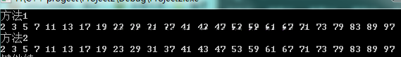总结:方法1是找出所有质数;方法2是剔除所有非质数,判断是否是非质数,虽然不复杂,但是会重复判断,故用质数作为因子减少重复的情况。