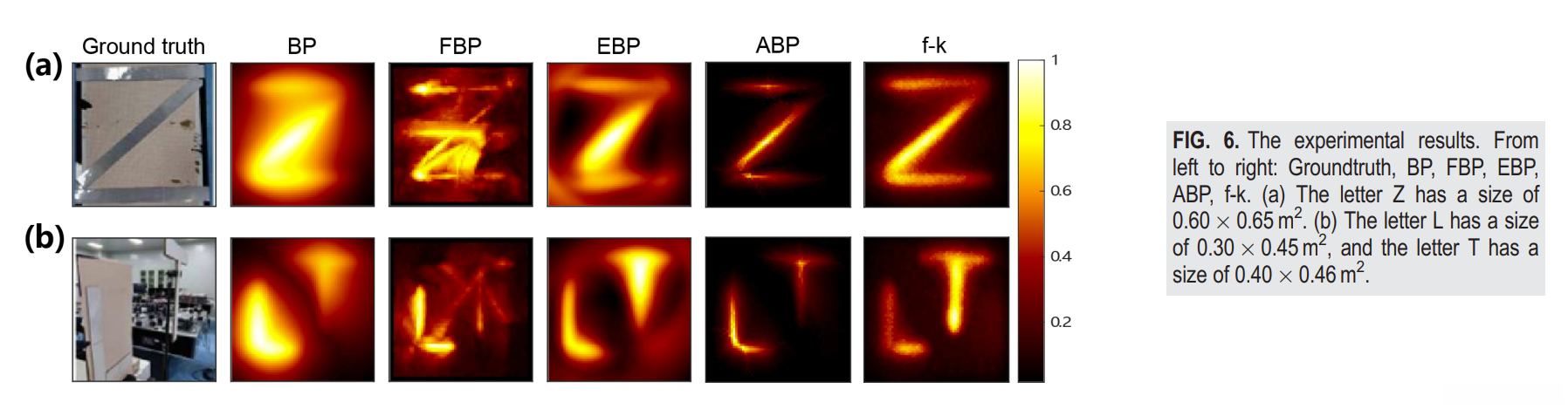 结果显示,ABP算法可以有效重建字母的形状,伪影得到明显抑制。