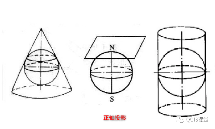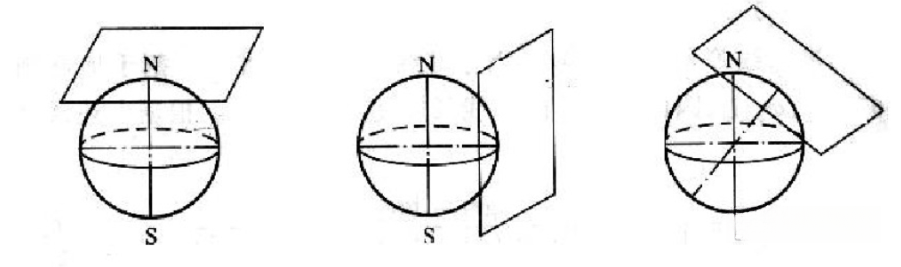 3、按照球面与投影面的相对位置,可分为正轴投影、横轴投影和斜轴投影