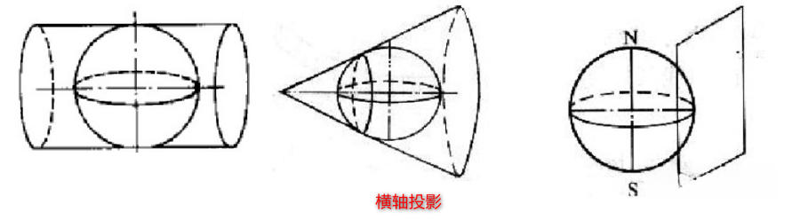 横轴方位投影可称为以投影面平行于地轴的方式实现的地图投影技术。其中具体包括横轴圆柱投影和平面圆锥投影两大类,在这两类中又分别以相应的圆柱或圆锥的旋转主直立轴垂直于地轴方向作为其基本构造特点。