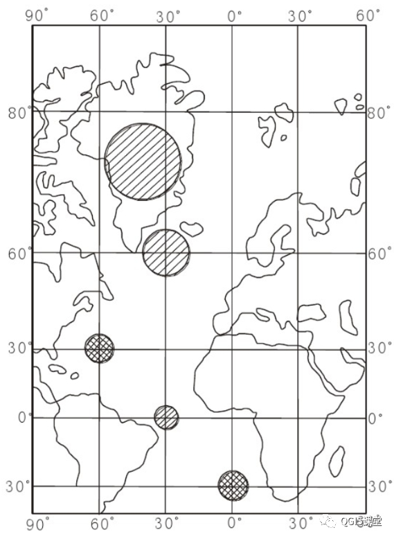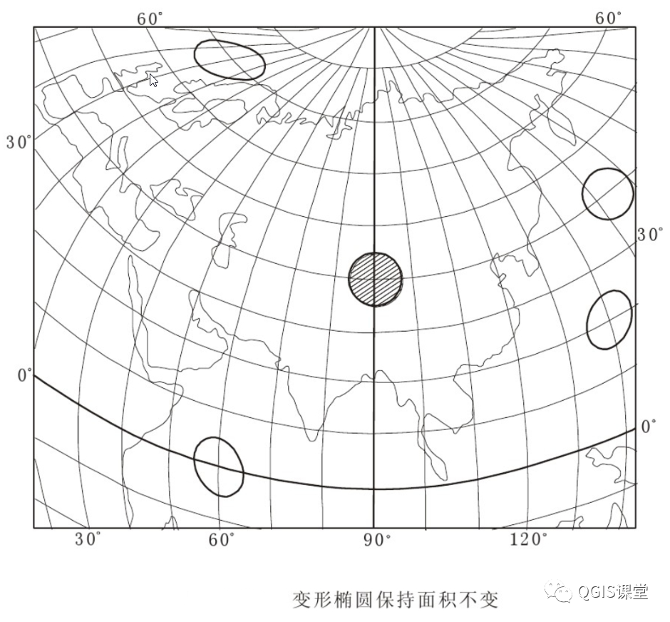 等积投影不发生面积变形;然而角度变形达到最大值 ,亦即该投影主要通过放大角度变形来实现面积的一致性。