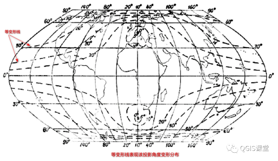 等变形曲线在不同的地图投影中呈现出各自独特的形态