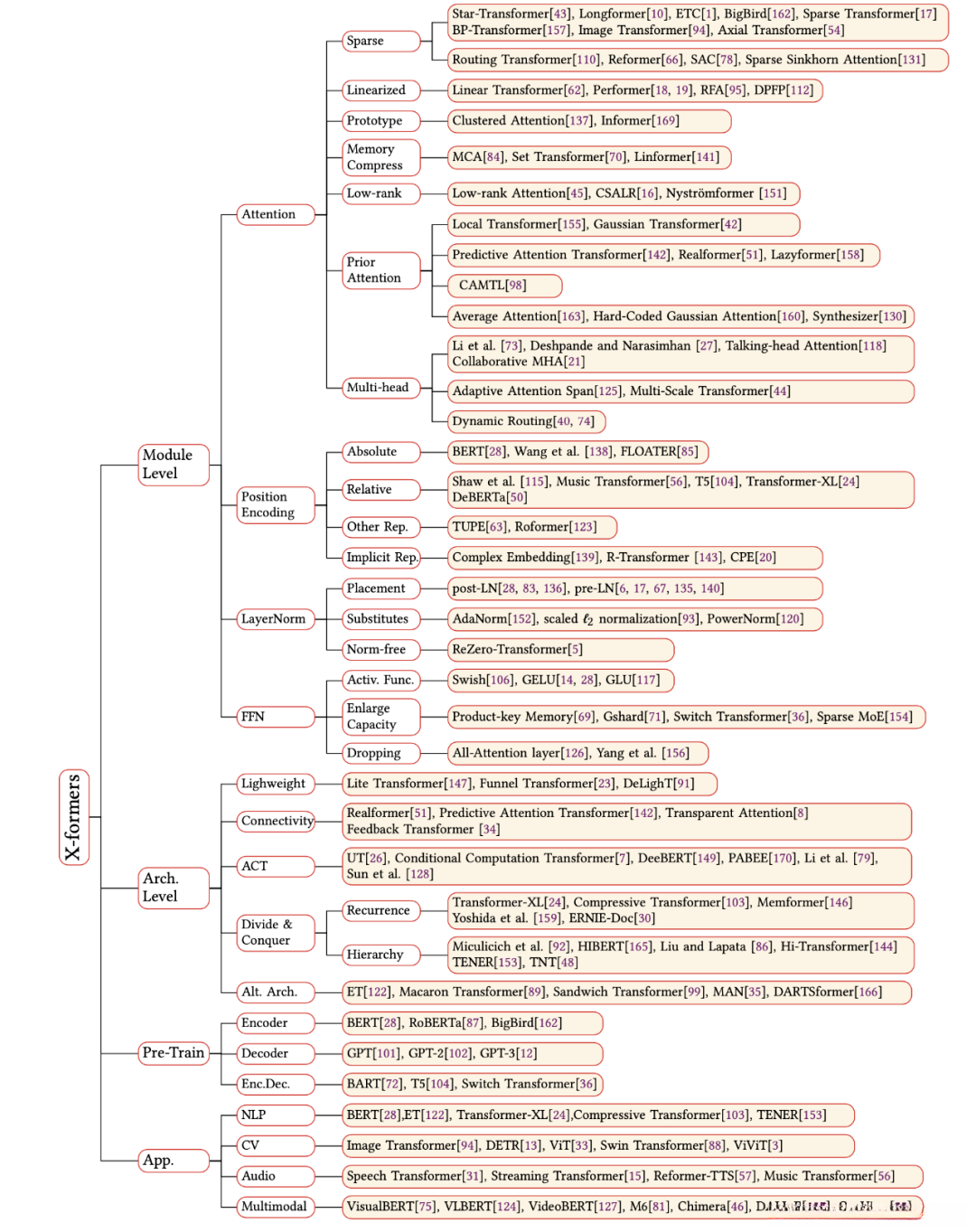 详细的 Transformer 分类如下图: