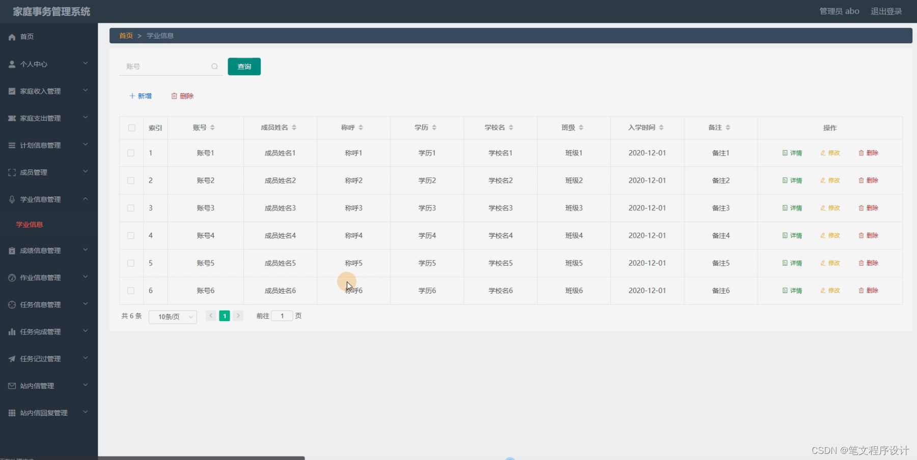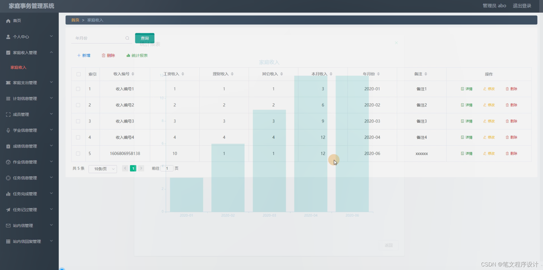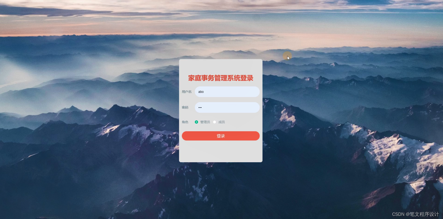 我们旨在开发一款综合性的家庭事务管理系统。该系统将包含家庭收入管理与支出规划两大核心模块,并涉及成员信息记录以及各类生活数据追踪等功能。通过这一系统建设, 我们期望实现每个家庭成员事务处理的高效便捷, 从而显著提升生活的品质与效率水平。