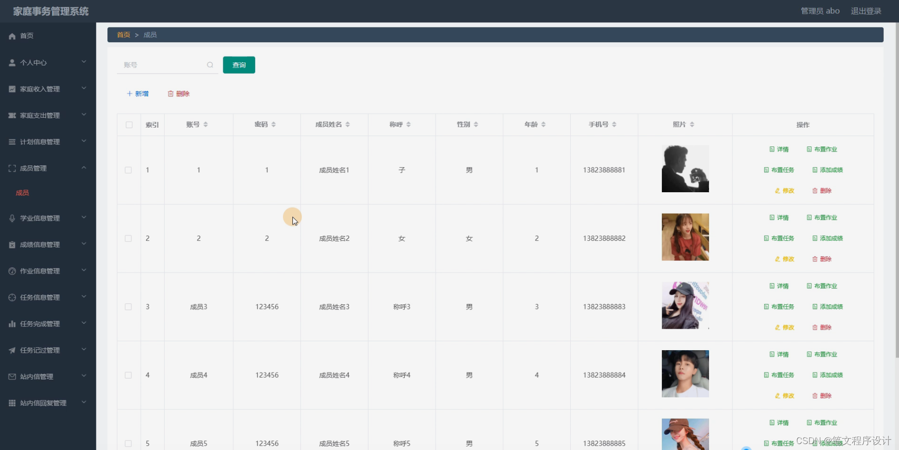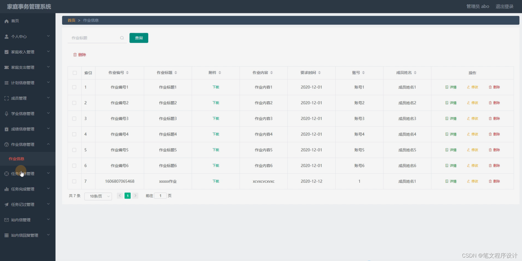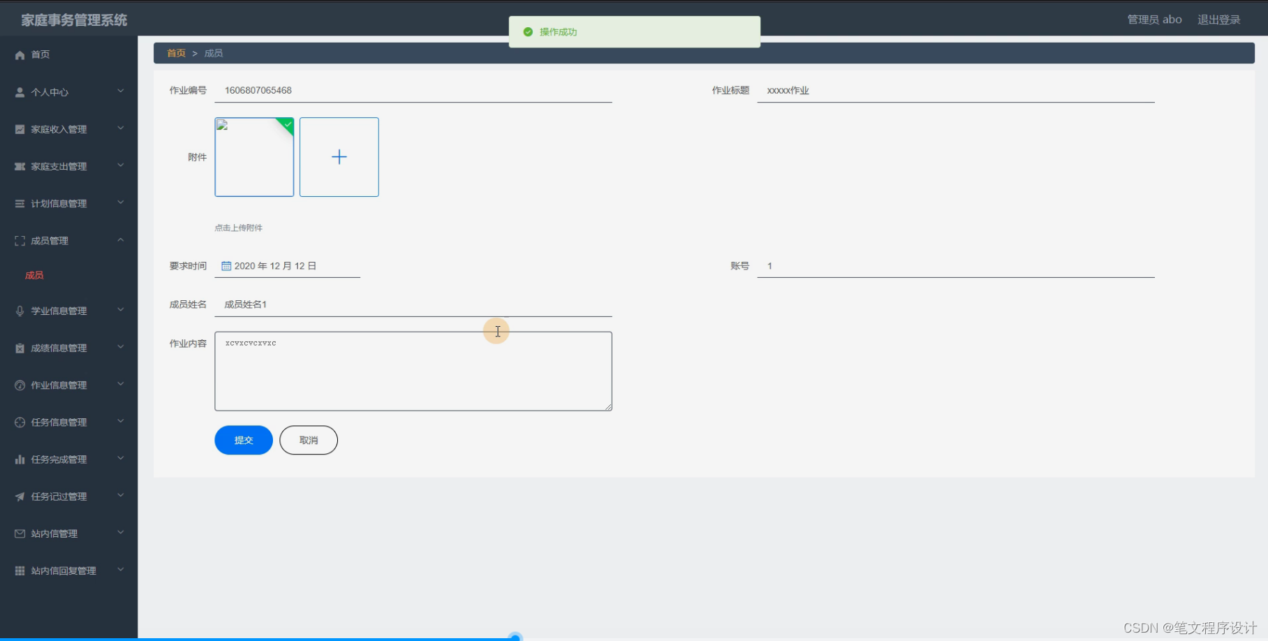 我们旨在开发一款综合性的家庭事务管理系统。该系统将包含家庭收入管理与支出规划两大核心模块,并涉及成员信息记录以及各类生活数据追踪等功能。通过这一系统建设, 我们期望实现每个家庭成员事务处理的高效便捷, 从而显著提升生活的品质与效率水平。