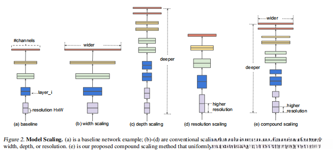 - 通过放大网络宽度、深度或分辨率中的任何一个维度均能显著提升分类精度;但随着模型规模进一步增大后段网络效率提升的空间逐渐缩减。