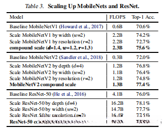 该作者依次在移动网(MobileNet)和残差网络(ResNet)上测试了自身的模型,并随后转向更高效的网络架构——EfficientNets。实验结果表明该方法具有较高的有效性,在采用复合缩放方案后,在对比于仅采用单一缩放策略的情况下,模型的准确率显著提升。