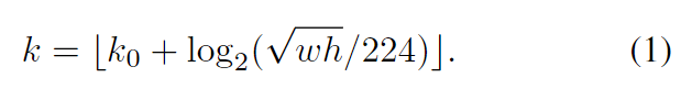 我们将我们的特征金字塔看作是从图像金字塔生成的。我们将一个宽为w,高为h(在输入图像上的尺寸)的RoI与特征金字塔的Pk层对齐: