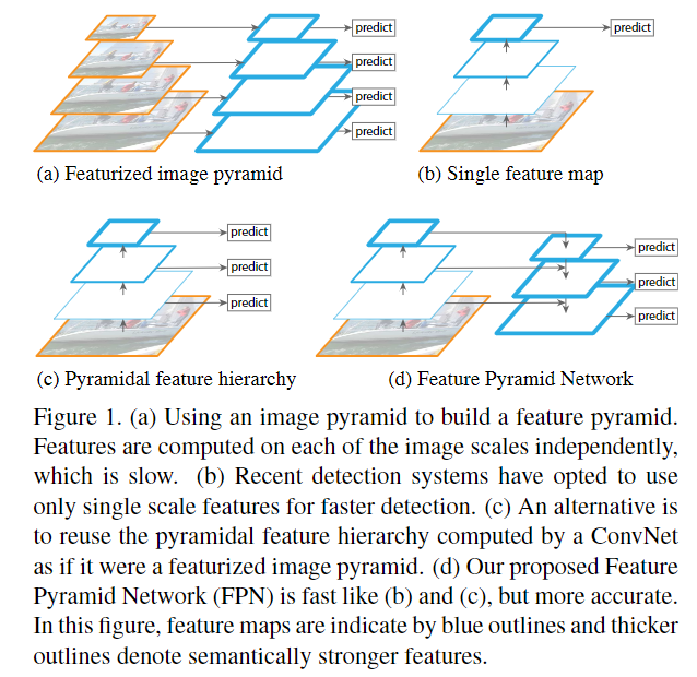 然而,图像金字塔并不是唯一一种计算多尺度特征表示的方法。深度卷积网络一层一层的逐层计算特征图,通过下采样,这样这些特征图就有着金字塔的形状。这种网络内的特征hierarchy产生了不同分辨率的特征图,但是由于通道数的不同,引入了很大的语义gaps。高分辨率的特征图只有低层次的特征,这损害了网络的表示能力(representational capacity)。