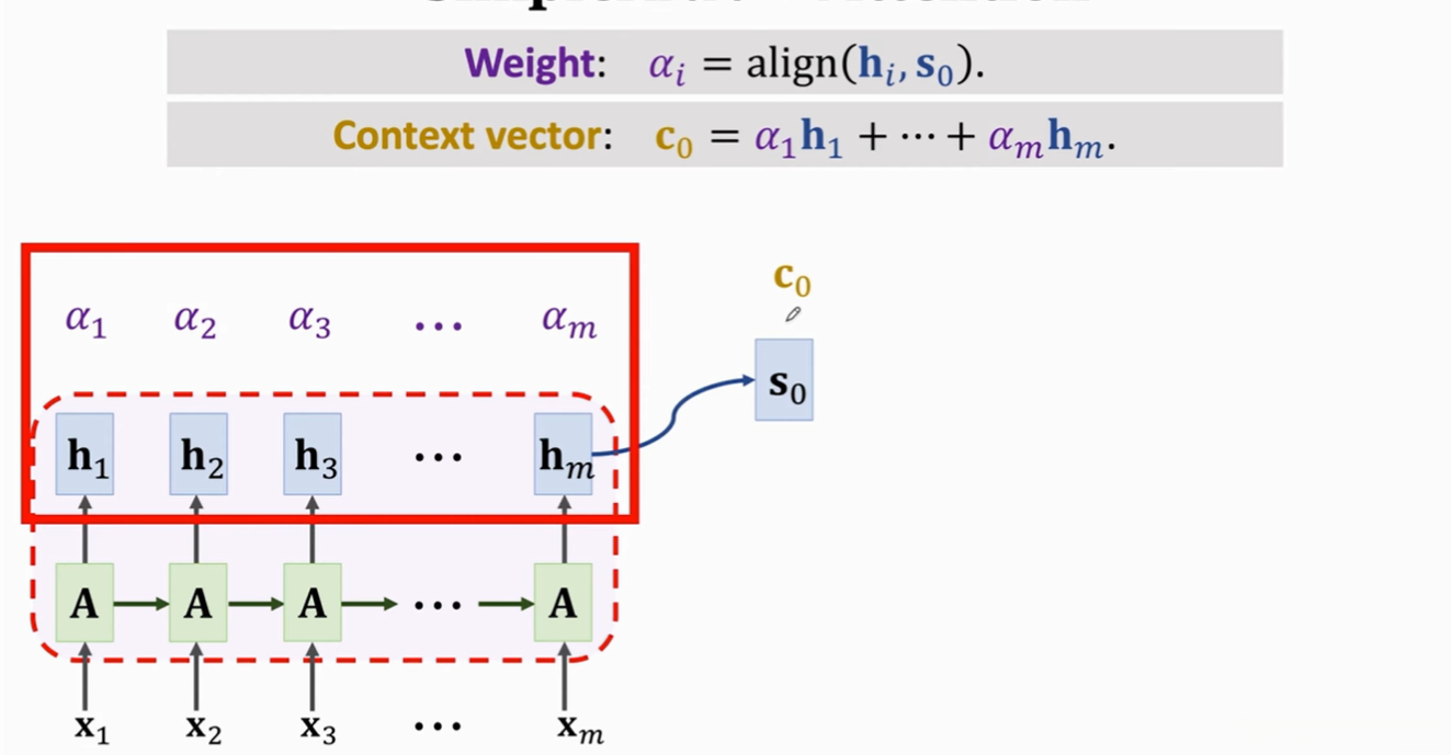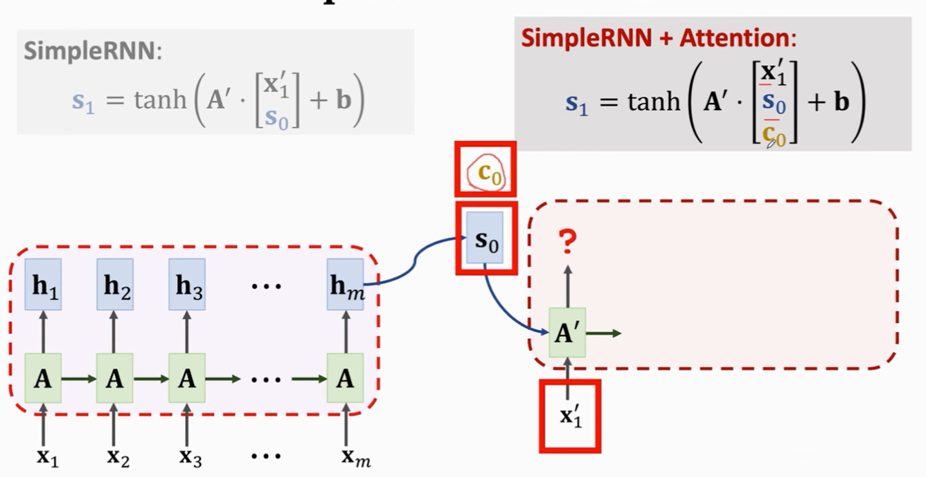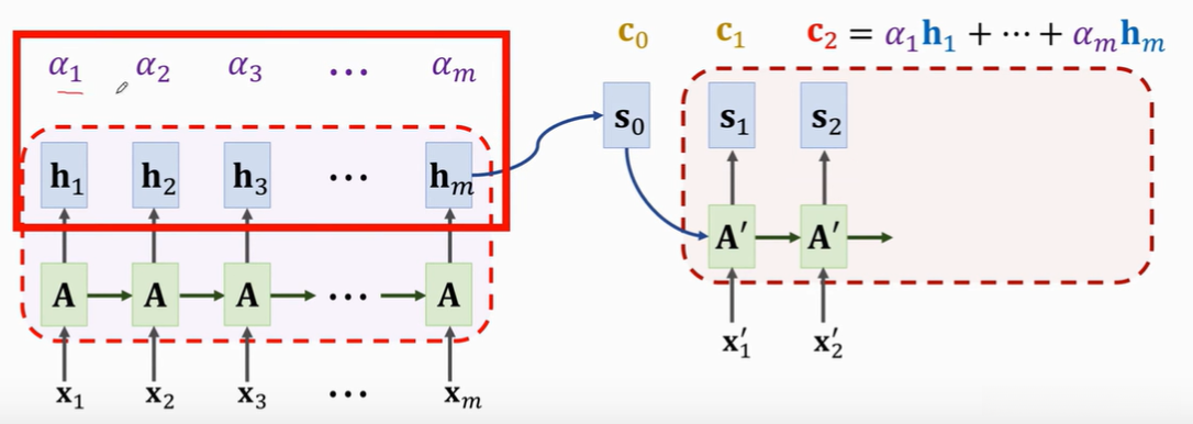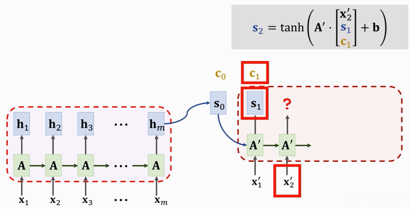 因为c0=a1h1+a2h2+....amhm,所以c0知道x1,x2....xm的所有信息,所以decoder的s1依赖于c0,
