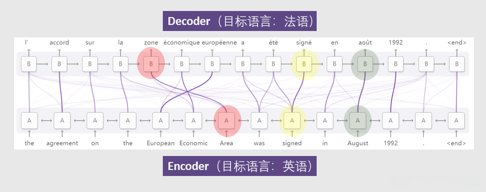 在attention的机制下,decoder每次更新状态时都会看一眼encoder的所有状态向量避免遗忘,attention还会告诉decoder应该关注哪一个状态(这也是名字的由来)